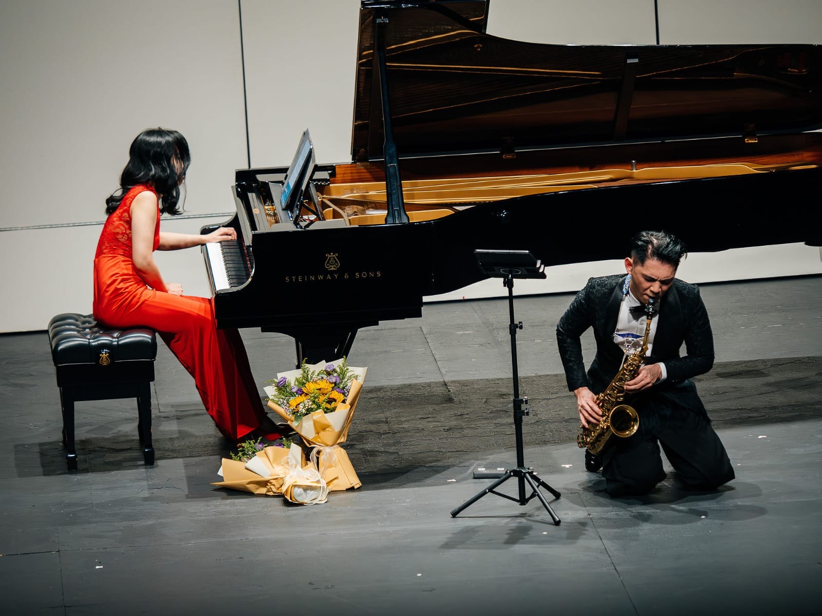 這晚演出題為S'way On Fire,《火魂》原是David Heath獻給Jacqueline du Pré,她是天才,卻被多發性硬化症折磨 ,二十六歲時手指逐漸失去感覺,再無法拉大提琴。Timothy改編了。張郁苓在Steinway鋼琴上轟、鋤、也彎身跨越琴鍵輕撥琴弦,Timothy激動得跪下來死命繼續吹色士風。如果你我有一天忽然不能再說話……